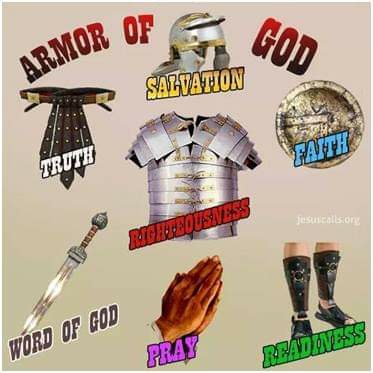 Father God, today we put on the full armor to guard our lives against attack. We put on the belt of truth to protect against lies and deception. We put on the breastplate of righteousness to protect our hearts from the temptations we battle. We put the gospel of peace on our feet, so we’re ready to take your light wherever you send us this day. We choose to walk in the peace and freedom of your Spirit and not be overcome with fear and anxious thoughts. We take up your shield of faith that will extinguish all the darts and threats hurled our way by the enemy. We believe in your power to protect us and choose to trust in you. We put on the helmet of salvation, which covers our minds and thoughts, reminding us we are children of the day, forgiven, set free, saved by the grace of Christ Jesus. We take up the sword of the Spirit, your very Word, the one offensive weapon given to us for battle, which has the power to demolish strongholds, alive, active, and sharper than any double-edged sword. We ask for your help in remembering to put on your full armor every day, for you give us all that we need to stand firm in this world. Forgive us God for the times we’ve been unprepared, too busy to care, or trying to fight and wrestle in our own strength. Thank you that we never fight alone, for you are constantly at work on our behalf, shielding, protecting, strengthening, exposing deeds of darkness, bringing to light what needs to be known, covering us from the cruel attacks we face even when we’re unaware. In the powerful name of Jesus, Amen.