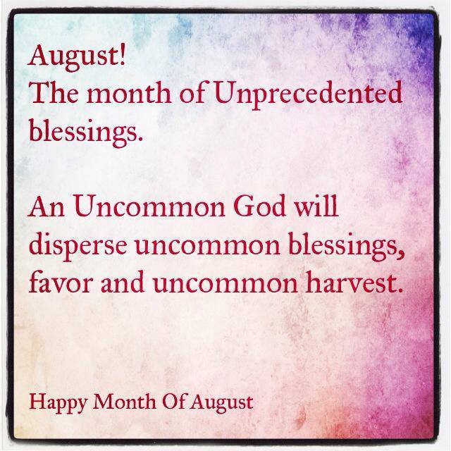 August is the 8th month of the year. Praise God if you are reading this you made it through 7 months of what some may say has been the worst year ever. Regardless of all that has been going on and still is going on, I say thank you Lord, you have been faithful! God is doing a new thing! Those of us who have kept our focus on God realize greater is coming! I believe the next months of this year is going to be the best months of this year! Think it, believe it, receive it, and work it!