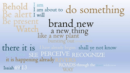 "See, I am doing a new thing! Now it springs up; do you not perceive it? I am making a way in the wilderness and streams in the wasteland." (Isaiah 43:10)